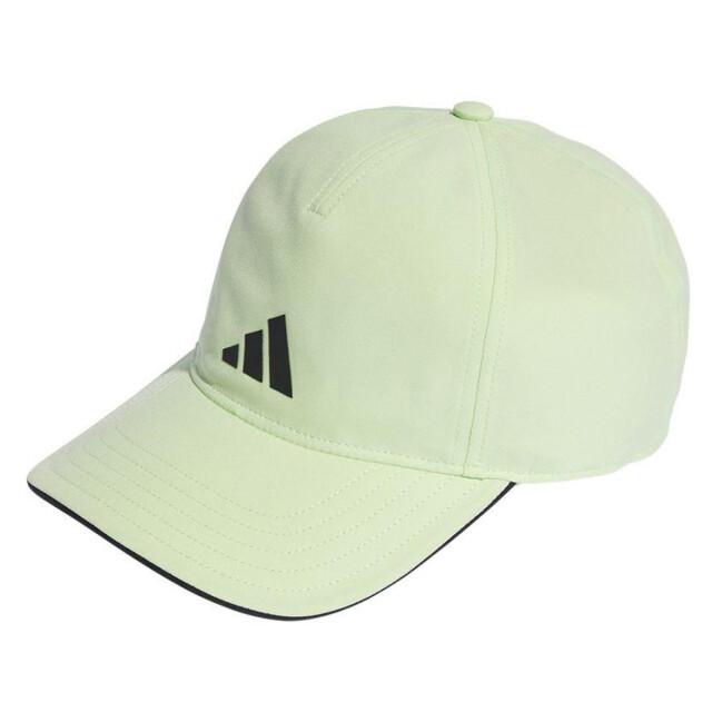 100% gerecycleerd polyester. Voering: Gaas. Ontwerp: Siliconenembleem. 5 rijige stiksels, knoop bovenaan, contrasterende sandwichpiek, gebogen rand, paneeltjes, zweetband. Stoftechnologie: Aeroready. Sluiting: Verstelbare gesp.
