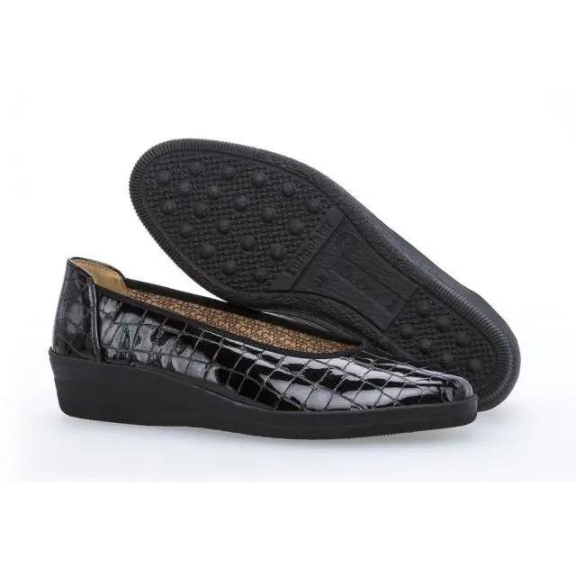 36.400.97 Gabor. Zeer comfortabele leren schoen op een wig van 3 cm en een plateau van 1,5 cm. Gevoerd met microvezel. Rubberen zool.