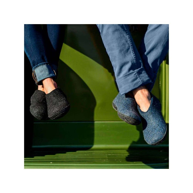 Artikel Shoe Natural Rubber Sole AR02 in kleur 10-Denim is een prachtige blauwe pantoffel met dichte hiel, voor dames, van het merk Glerups. De zool is van rubber. De voering is ongevoerd. De voetwijdte is standaard.