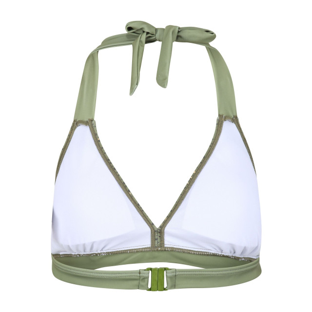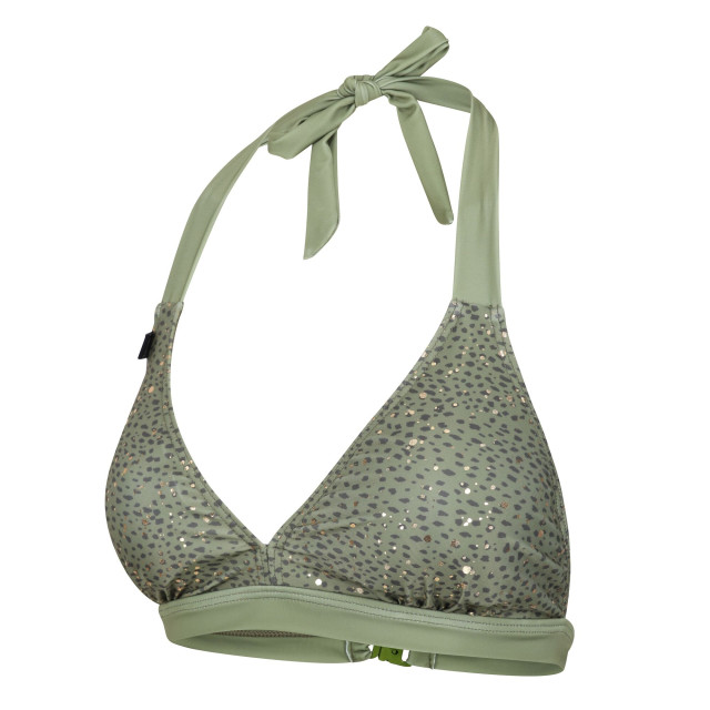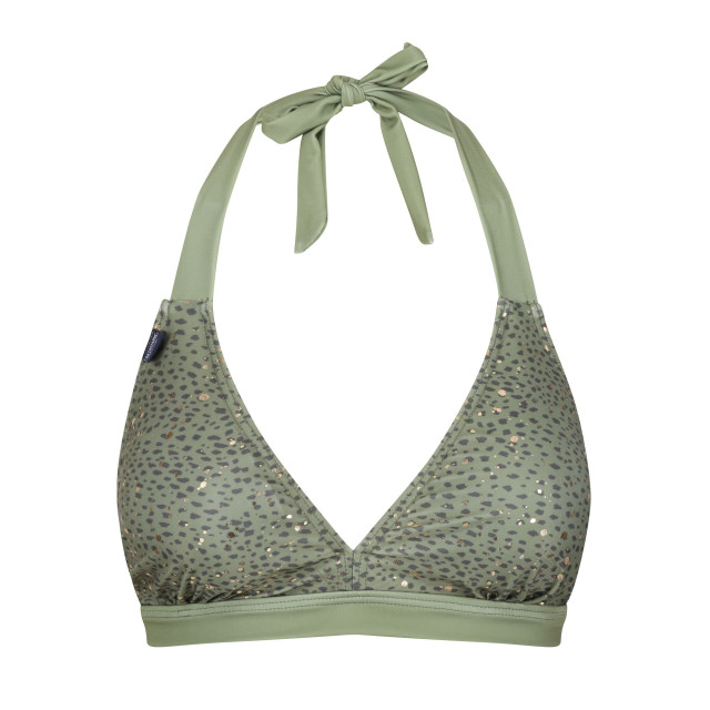 Materiaal: Elastaan, Polyamide, Polyester. Stof: Zachte aanraking, Stretch. 109gsm. Ontwerp: Abstract, Logo. Halslijn: Halternek, Gebonden Hals. Bevestiging: Haak en Lus. Beha stijl: Volledige cup. Duurzaamheid: Gemaakt van gerecycled materiaal.