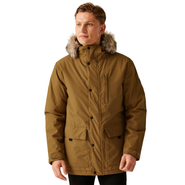 Materiaal: 100% polyester. Voering: Taffeta. Ontwerp: Eenvoudig. Stoftechnologie: Ademend, Isotex 5000, Thermo-Guard, Waterdicht, Weerbestendig, Winddicht. Halslijn: Kapitein. Mouwtype: Met lange mouwen. Schokkoord zoom. Kenmerken van de kap: Afneembare kunstbontafwerking, gekweekt op de kap. Zakken: 2 voorzakken, klepsluiting, 1 borstzak. Bevestiging: Tweewegrits. Duurzaamheid: Duurzame materialen.