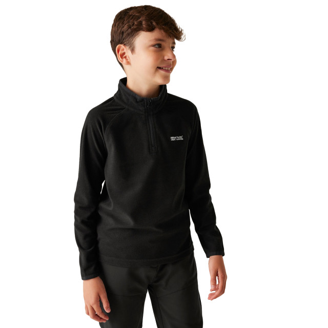 100% Polyester. Mini-streep microfleece met ritshals. 140gsm. Stretchband aan manchetten en kraag. Machinewasbaar.