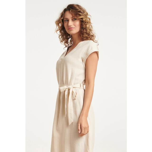 Ontdek ultiem comfort en tijdloze stijl met de Smashed Lemon Loose Linnen Jurk in Zandkleur. Deze relaxte jurk belichaamt moeiteloze elegantie, perfect voor vrouwen die op zoek zijn naar een veelzijdig kledingstuk dat zowel comfort als flair biedt. De V-hals met panelen geeft deze jurk een verfijnde uitstraling, terwijl de korte mouwen met omslagmanchetten een speels detail toevoegen. Draag de jurk losjes voor een relaxte look of accentueer je taille met de bijpassende riem, waardoor je moeiteloos kunt schakelen tussen casual en chic. In de subtiele zandkleur straalt deze jurk rust en verfijning uit, waardoor het een veelzijdige keuze is voor verschillende gelegenheden. Gemaakt van 70% rayon en 30% linnen, biedt de stof een lichte en ademende ervaring, ideaal voor warme dagen. De Smashed Lemon Loose Linnen Jurk in Zandkleur is ontworpen voor vrouwen die op zoek zijn naar een combinatie van comfort en stijl. Upgrade je zomergarderobe met deze prachtige jurk en geniet van het beste van