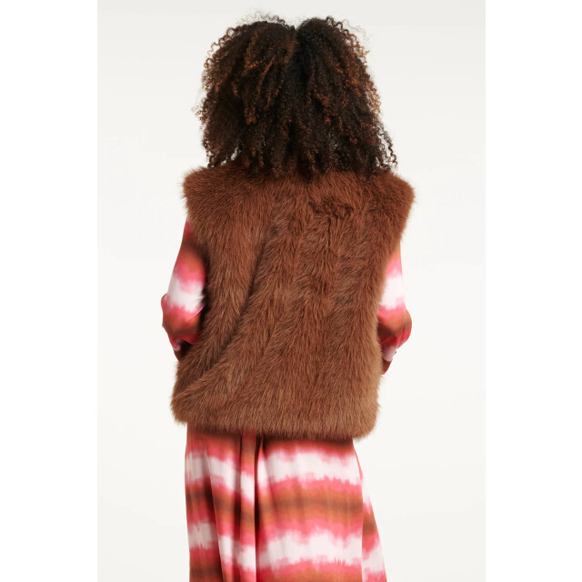 Voeg warmte én stijl toe aan je outfit met dit bruine faux fur gilet van Smashed Lemon. Het korte model is gemaakt van heerlijk zacht nepbont en heeft een losvallende pasvorm die perfect is voor gelaagde looks. Combineer het bontgilet met een coltrui of jurk voor een modieuze en comfortabele herfst-winterstijl. Een echte must-have voor de koudere dagen. Belangrijkste kenmerken: - Gemaakt van zacht faux fur in warme bruintint - Losvallend model voor een nonchalante, trendy look - Kort gilet, ideaal voor laagjes in herfst en winterSpecificaties :
