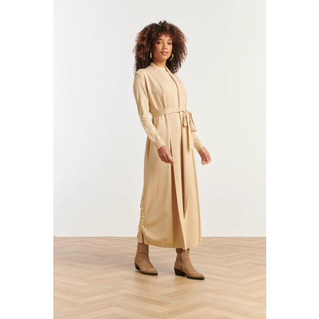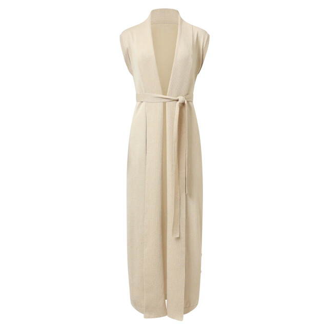 Dit gilet met gouden lurex van Smashed Lemon is een elegante layering-piece. Draag open over een basic jurk of blouse voor een feestelijke touch. Gemaakt van 85% Viscose. Belangrijke punten:- - Glanzend lurexdetail voor een chique uitstraling - Midi-lengte voor extra elegantie - Getailleerd silhouet met bij passende riem Verkrijgbaar in Bordeaux, sand, Grey, black.Specificaties :