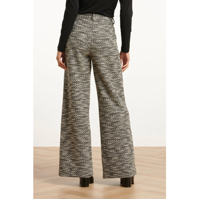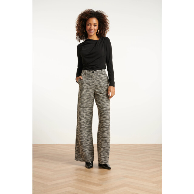 Comfortabele zwart-witte damesbroek van Smashed Lemon, gemaakt van een hoogwaardige stof met een subtiele tweedachtige textuur voor een stijlvolle en luxe uitstraling. Het losvallende model met wijde pijpen zorgt voor een vrouwelijke, elegante look die perfect combineert met een nette blouse of casual top. Deze broek is ideaal voor zowel casual als zakelijke outfits. Belangrijke punten: - Uni zwart-witte kleurstelling met verfijnde tweedlook stof - Losvallende pasvorm met wijde pijpen voor optimaal draagcomfort - Perfect te combineren met elegante tops voor een casual-chique uitstralingSpecificaties :