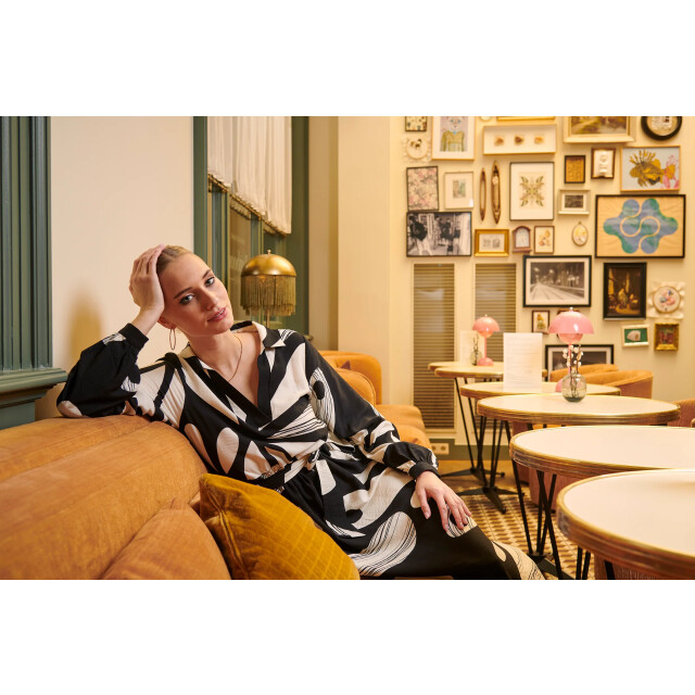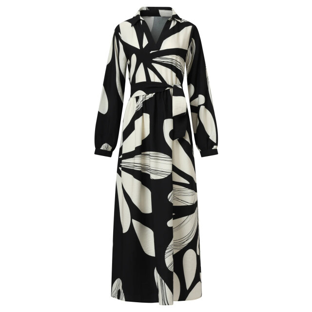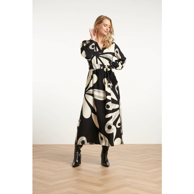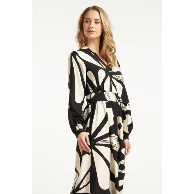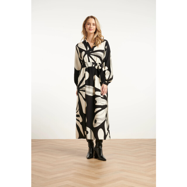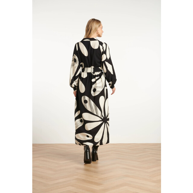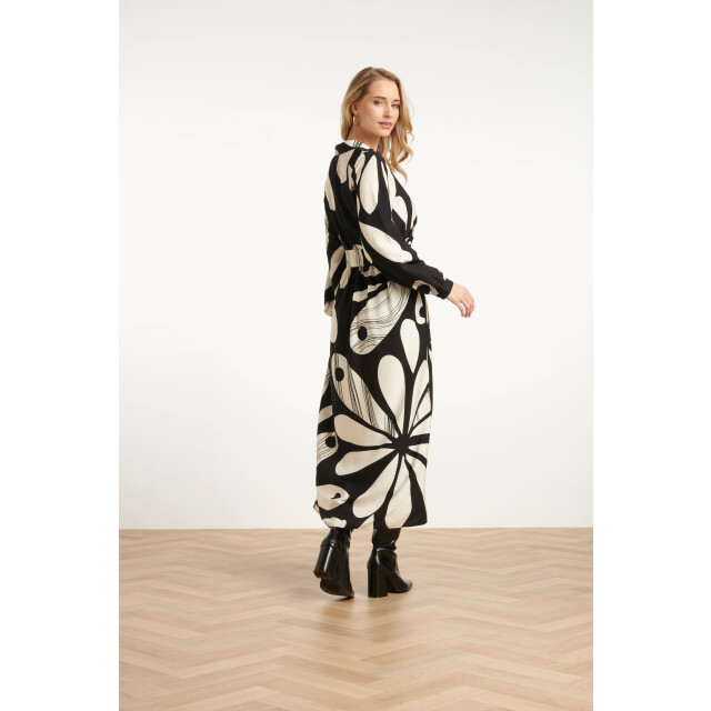 Deze elegante maxi-jurk van Smashed Lemon is uitgevoerd in een verfijnde bloemenprint in off-white op een zwarte achtergrond. De jurk heeft een vrouwelijk panelen lijfje met een V-hals en klassieke kraag, afgewerkt met lange pofmouwen met manchetten en een bijpassende tailleceintuur voor een flatterend silhouet. Gemaakt van een luchtige rayonstof (80%) die zacht aanvoelt en sierlijk meebeweegt. Belangrijke punten: • Romantische bloemenprint in zwart en off-white • Panelen V-hals met kraag, pofmouwen en bijpassende ceintuur voor een elegante look • Gemaakt van 80% rayon – licht, ademend en comfortabel voor elke gelegenheidSpecificaties :