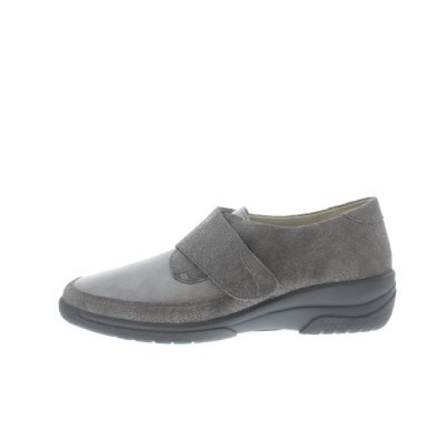 Solidus dames klittenbandschoen, model Hedda uit de Solicare Soft lijn, kleur grijs glad leer met grijs nubuck leer, wijdte J, geschikt voor de normale tot iets bredere voet, uitneembaar voetbed.
