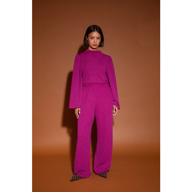 Productinformatie: De Isla Pants heeft een comfortabele pasvorm. De broek valt hoger in de taille en heeft een elastische band. De Fuchsia kleur maakt de broek uniek. Er zit een licht reliëf in het zachte materiaal.