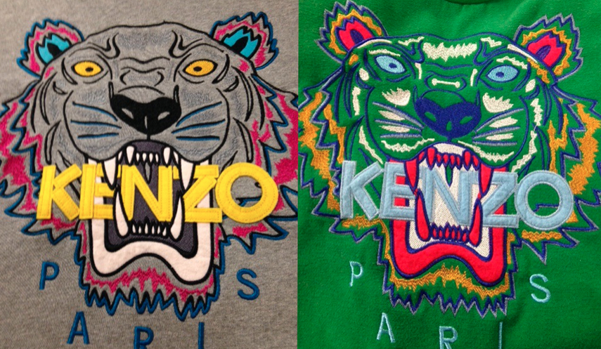 Een belangrijk onderdeel waaran je een neppe Kenzo trui goed kunt onderscheiden van een echte, is het borduurwerk. Kijk altijd goed naar de kleurencombinaties, de vormen van de tijger en vergelijk de letters goed met elkaar. Vaak worden er net wat andere kleurencombinaties gebruikt dan bij het origineel. Een handige tip zou dus kunnen zijn om de trui eerst eens bij een bekende winkel op te zoeken waarvan je zeker weet dat ze het origineel verkopen en de kleuren eens met elkaar te vergelijken. Een andere veel voorkomend verschil is de letter 'Z' op de trui. Bij het origineel zie je dat er rechts bovenin een kleine inkeping zit in de letter Z, dit wordt vaak bij de neppe variant vergeten. Ook bestaat de letter 'E' uit 2 delen, terwijl deze bij de neppe trui uit 1 geheel bestaat. Een andere belangrijke aanwijzing, is de neus van de tijger. De neppe variant heeft vaak een afwijkende ronde vorm ten opzichte van het geheel. Ook het haar van de tijger verschilt in veel gevallen tussen een neppe of een echte Kenzo trui. Bij een echte trui of t-shirt is dit veel gedetailleerder en bestaat het uit losse haren, terwijl bij de neppe trui of t-shirt deze haren vaak als geheel gedrukt worden.